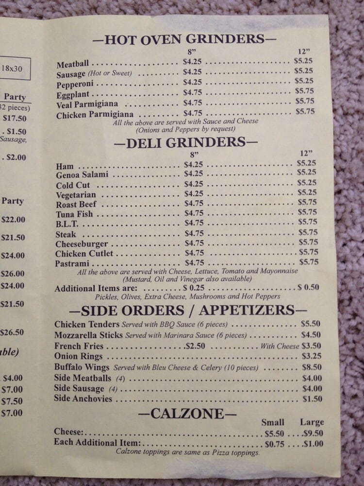 Family Pizza & Grinder Menu
